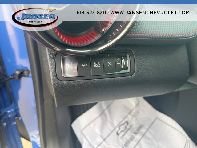 The Jansen Advantage: Complimentary Carfax on all vehicles, Complimentary Service Loaners, Complimentary Oil Change, Service Rewards Program, and Complimentary Local Pickup and Delivery. 1.5L DOHC AWD Reef Blue Metallic 2-Way Power Driver Lumbar Control Seat Adjuster, 3.47 Final Drive Axle Ratio, 4-Wheel Disc Brakes, 6 Speakers, ABS brakes, Air Conditioning, Alloy wheels, AM/FM radio: SiriusXM, Auto High-beam Headlights, Automatic temperature control, Brake assist, Bumpers: body-color, Compass, Convenience Package III, Cruise Control, Delay-off headlights, Driver 8-Way Power Seat Adjuster, Driver door bin, Driver vanity mirror, Dual front impact airbags, Dual front side impact airbags, Electronic Stability Control, Emergency communication system: OnStar and Chevrolet connected services capable, Evotex Seat Trim, Four wheel independent suspension, Front anti-roll bar, Front Bucket Seats, Front Center Armrest, Front dual zone A/C, Front Passenger 2-Way Power Lumbar Seat Adjuster, Front Passenger 4-Way Manual Seat Adjuster, Front Passenger 8-Way Power Seat Adjuster, Front reading lights, Fully automatic headlights, Garage door transmitter, Heated door mirrors, Heated front seats, Heated Rear Outboard Seating Positions, Heated steering wheel, Illuminated entry, Low tire pressure warning, Memory Settings, Navigation System, Occupant sensing airbag, Outside temperature display, Overhead airbag, Overhead console, Panic alarm, Passenger door bin, Passenger vanity mirror, Power door mirrors, Power driver seat, Power Liftgate, Power steering, Power windows, Preferred Equipment Group 2RS, Premium audio system: Chevrolet Infotainment 3, Radio data system, Radio: 11.3 Diagonal Advanced Color LCD Display, Rain sensing wipers, Rear anti-roll bar, Rear reading lights, Rear seat center armrest, Rear window defroster, Rear window wiper, Remote keyless entry, Security system, Speed-sensing steering, Split folding rear seat, Spoiler, Sport steering wheel, Steering wheel mounted audio controls, Tachometer, Telescoping steering wheel, Tilt steering wheel, Traction control, Trip computer, Variably intermittent wipers, Ventilated Driver Seat, Ventilated Front Passenger Seat, Wheels: 19 Carbon Flash Metallic Aluminum. 24/29 City/Highway MPG