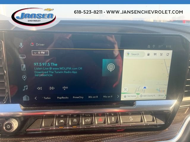 The Jansen Advantage: Complimentary Carfax on all vehicles, Complimentary Service Loaners, Complimentary Oil Change, Service Rewards Program, and Complimentary Local Pickup and Delivery. EcoTec3 5.3L V8 4WD Sterling Gray Metallic 12.3 Multicolor Reconfigurable Digital Display, 120-Volt Bed Mounted Power Outlet, 120-Volt Interior Power Outlet, 170 Amp Alternator, 2 USB Data Ports, 220 Amp Alternator, 3.23 Rear Axle Ratio, 4-Wheel Disc Brakes, 40/20/40 Front Split-Bench Seat, 6 Speakers, 6-Speaker Audio System, ABS brakes, Air Conditioning, All-Star Edition, Alloy wheels, AM/FM radio: SiriusXM with 360L, Apple CarPlay/Android Auto, Auto High-beam Headlights, Auto-Locking Rear Differential, Automatic Emergency Braking, Automatic temperature control, Auxiliary External Transmission Oil Cooler, Bluetooth® For Phone, Brake assist, Bumpers: chrome, Chrome Mirror Caps, Cloth Seat Trim, Color-Keyed Carpeting Floor Covering, Compass, Convenience Package, Cruise Control, Deep-Tinted Glass, Delay-off headlights, Driver door bin, Driver vanity mirror, Dual front impact airbags, Dual front side impact airbags, Dual-Zone Automatic Climate Control, Electric Rear-Window Defogger, Electronic Cruise Control, Electronic Stability Control, Electronic Transmission Range Selector Shifter, Emergency communication system: OnStar, External Engine Oil Cooler, Floor Mounted Center Console, Following Distance Indicator, Forward Collision Alert, Front anti-roll bar, Front Bucket Seats, Front Center Armrest w/Storage, Front dual zone A/C, Front Frame-Mounted Black Recovery Hooks, Front License Plate Kit, Front Pedestrian Braking, Front reading lights, Front Rubberized Vinyl Floor Mats, Front wheel independent suspension, Fully automatic headlights, HD Rear Vision Camera, Heated door mirrors, Heated front seats, Heated Power-Adjustable Outside Mirrors, Heated Steering Wheel, Heated steering wheel, Heavy-Duty Air Filter, Hill Descent Control, Hitch Guidance, Illuminated entry, Integrated Trailer Brake Controller, LED Cargo Area Lighting, Low tire pressure warning, Manual Tilt/Telescoping Steering Column, Occupant sensing airbag, Off-Road Suspension, OnStar Services Capable, Outside temperature display, Overhead airbag, Overhead console, Panic alarm, Passenger door bin, Passenger vanity mirror, Power door mirrors, Power driver seat, Power steering, Power windows, Preferred Equipment Group 1LT, Premium audio system: Chevrolet Infotainment 3 Premium, Protection Package, Radio data system, Radio: Chevrolet Infotainment 3 Premium System, Rear reading lights, Rear Rubberized-Vinyl Floor Mats, Rear step bumper, Rear Wheelhouse Liners, Rear window defroster, Remote keyless entry, Remote Start Package, Remote Vehicle Starter System, Security system, Speed-sensing steering, Split folding rear seat, Standard Suspension Package, Standard Tailgate, Steering Wheel Audio Controls, Steering wheel mounted audio controls, Tachometer, Teen Driver, Telescoping steering wheel, Tilt steering wheel, Tire Pressure Monitoring System, Traction control, Trailering Package, Trip computer, Variably intermittent wipers, Voltmeter, Wheels: 17 x 8 Bright Silver Painted Aluminum, Wheels: 18 x 8.5 Bright Silver Painted Aluminum, Wheels: 20 x 9 Painted Aluminum, Wi-Fi Hot Spot Capable, Wireless Charging, Wrapped Steering Wheel, Z71 Off-Road Package. 15/19 City/Highway MPG
