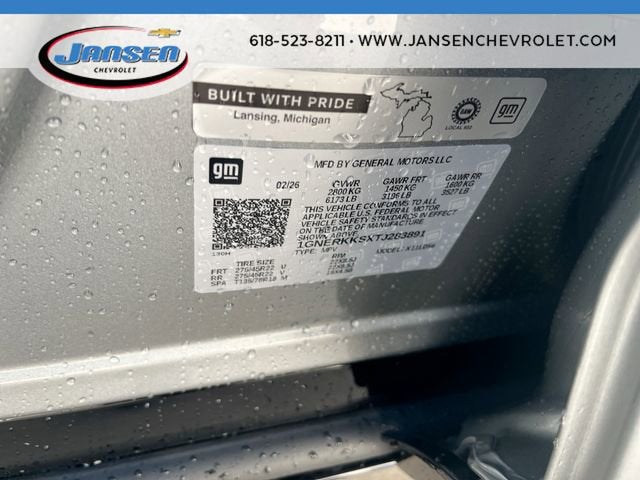 The Jansen Advantage: Complimentary Carfax on all vehicles, Complimentary Service Loaners, Complimentary Oil Change, Service Rewards Program, and Complimentary Local Pickup and Delivery. 2.5L DOHC FWD Sterling Gray Metallic 12 Speakers, 1st and 2nd Row All-Weather Floor Liners, 3rd Row All-Weather Floor Liner, 3rd row seats: split-bench, 4-Wheel Disc Brakes, 6-Way Power Front Passenger Seat Adjuster, 8-Way Power Driver Seat Adjuster, ABS brakes, Air Conditioning, Alloy wheels, AM/FM radio: SiriusXM with 360L, Apple CarPlay/Android Auto, Auto High-beam Headlights, Auto tilt-away steering wheel, Auto-dimming door mirrors, Automatic temperature control, Bose Premium 12-Speaker Audio System Feature, Brake assist, Bumpers: body-color, Child-Seat-Sensing Airbag, Compass, Cruise Control, Delay-off headlights, Driver 4-Way Power Lumbar Seat Adjuster, Driver door bin, Driver vanity mirror, Dual front impact airbags, Dual front side impact airbags, Electronic Stability Control, Emergency communication system: OnStar, Exterior Parking Camera Rear, Floor Liner Package, Four wheel independent suspension, Front anti-roll bar, Front Bucket Seats, Front Center Armrest, Front dual zone A/C, Front Passenger 4-Way Power Lumbar Seat Adjuster, Front reading lights, Fully automatic headlights, Garage door transmitter, Heated door mirrors, Heated Driver and Front Passenger Seats, Heated front seats, Heated rear seats, Heated steering wheel, Illuminated entry, Integrated Cargo Liner, Low tire pressure warning, Memory seat, Navigation System, Occupant sensing airbag, Outside temperature display, Overhead airbag, Overhead console, Panic alarm, Passenger door bin, Passenger vanity mirror, Perforated Leather-Appointed Seat Trim, Power door mirrors, Power driver seat, Power Dual Glass Panoramic Sliding Sunroof, Power Liftgate, Power passenger seat, Power steering, Power windows, Radio data system, Radio: : Audio System w/17.7 Diagonal Display, Rain sensing wipers, Rear air conditioning, Rear anti-roll bar, Rear reading lights, Rear window defroster, Rear window wiper, Remote keyless entry, Security system, SiriusXM with 360L Trial Subscription, Speed-sensing steering, Spoiler, Steering wheel memory, Steering wheel mounted audio controls, Tachometer, Telescoping steering wheel, Tilt steering wheel, Traction control, Trip computer, Turn signal indicator mirrors, Variably intermittent wipers, Ventilated Driver and Front Passenger Seats, Ventilated front seats, Voltmeter, Wheels: 22 High-Gloss Black Aluminum. 20/26 City/Highway MPG