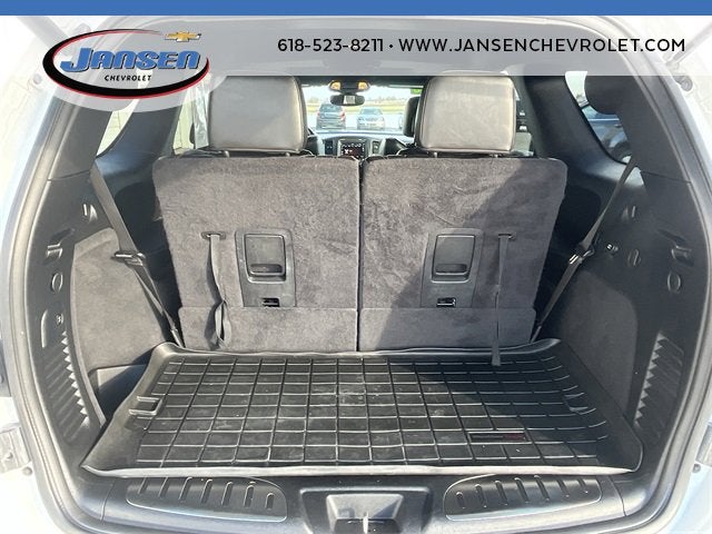 2nd Row Fold/Tumble Captain Chairs, 2nd Row Mini Console w/Cupholders, 2nd Row Seat Mounted Inboard Armrests, 3.09 Rear Axle Ratio, 3rd Row Floor Mat & Mini Console, 3rd row seats: split-bench, 4-Wheel Disc Brakes, 6-Passenger Seating, 7 & 4 Pin Wiring Harness, 9 Speakers, ABS brakes, Air Conditioning, Alloy wheels, AM/FM radio: SiriusXM, Anti-whiplash front head restraints, Apple CarPlay/Android Auto, Audio memory, Auto High-beam Headlights, Auto-dimming door mirrors, Auto-dimming Rear-View mirror, Auto-leveling suspension, Automatic temperature control, Blacktop Package, Blind Spot & Cross Path Detection, Brake assist, Bumpers: body-color, Class IV Receiver Hitch, Compass, Cruise Control, Delay-off headlights, Driver door bin, Driver vanity mirror, Dual front impact airbags, Dual front side impact airbags, Electronic Stability Control, Emergency communication system: Roadside Assistance/9-1-1 Call, Four wheel independent suspension, Front anti-roll bar, Front Bucket Seats, Front Center Armrest w/Storage, Front dual zone A/C, Front fog lights, Front License Plate Bracket, Front reading lights, Fully automatic headlights, Garage door transmitter, Gloss Black Badges, Gloss Black Exterior Mirrors, Heated door mirrors, Heated front seats, Heated rear seats, Heated steering wheel, Heavy-Duty Engine Cooling, High-Intensity Discharge Headlights, Illuminated entry, Knee airbag, Leather steering wheel, Leather Suede Bucket Seats, Low tire pressure warning, Memory seat, Navigation System, Occupant sensing airbag, Outside temperature display, Overhead airbag, Overhead console, Panic alarm, ParkView Rear Back-Up Camera, Passenger door bin, Passenger vanity mirror, Power door mirrors, Power driver seat, Power Liftgate, Power passenger seat, Power steering, Power Sunroof, Power windows, Quick Order Package 22S, Radio data system, Radio: Uconnect 4C Nav w/8.4" Display, Rain sensing wipers, Rear air conditioning, Rear anti-roll bar, Rear Load Leveling Suspension, Rear reading lights, Rear seat center armrest, Rear window defroster, Rear window wiper, Remote keyless entry, Security system, Speed-Sensitive Wipers, Split folding rear seat, Spoiler, Steering wheel mounted audio controls, Tachometer, Telescoping steering wheel, Tilt steering wheel, Traction control, Trailer Brake Control, Trailer Tow Group IV, Trip computer, Turn signal indicator mirrors, Variably intermittent wipers, Wheels: 20" x 8.0" High Gloss Black Aluminum, Wheels: 20" x 8.0" Satin Carbon - Design 1.