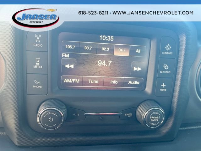 110 mph Vehicle Max Speed Calibration, 3.45 Rear Axle Ratio, 4-Wheel Disc Brakes, 8 Speakers, ABS brakes, Air Conditioning, AM/FM radio, Automatic Headlamps, Aux Battery, Black 3-Piece Hard Top, Brake assist, Cloth Low-Back Bucket Seats, Compass, Cruise Control, Deep Tint Sunscreen Windows, Delay-off headlights, Driver door bin, Driver vanity mirror, Dual front impact airbags, Dual front side impact airbags, Electronic Stability Control, Freedom Panel Storage Bag, Front 1-Touch Down Power Windows, Front anti-roll bar, Front Bucket Seats, Front Center Armrest w/Storage, Front fog lights, Front reading lights, Integrated roll-over protection, Leather Wrapped Steering Wheel, Low tire pressure warning, No Soft Top, Non-Lock Fuel Cap w/o Discriminator, Normal Duty Suspension, Occupant sensing airbag, Outside temperature display, ParkView Rear Back-Up Camera, Passenger door bin, Passenger vanity mirror, Power Heated Mirrors, Power steering, Quick Order Package 22S Sport S, R1234YF A/C Refrigerant, Radio data system, Radio: Uconnect 3 w/5" Display, Rear anti-roll bar, Rear reading lights, Rear Window Defroster, Rear Window Wiper/Washer, Remote Keyless Entry, Security Alarm, Speed Sensitive Power Locks, Steering wheel mounted audio controls, Stop-Start Dual Battery System, Sun Visors w/Illuminated Vanity Mirrors, Tachometer, Telescoping steering wheel, Tilt steering wheel, Traction control, Trip computer, Variably intermittent wipers, Wheels: 17" x 7.5" Black Steel Styled, Wheels: 17" x 7.5" Machined Granite Crystal, Wheels: 17" x 7.5" Tech Silver Aluminum.