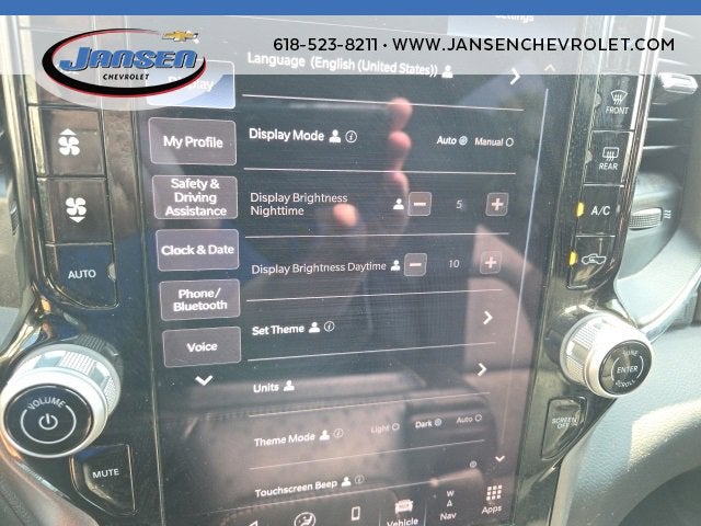 10 Speakers, 3 Rear Seat Head Restraints, 3.55 Rear Axle Ratio, 4 Way Front Headrests, 4-Wheel Disc Brakes, 4G LTE Wi-Fi Hot Spot, ABS brakes, Air Conditioning, Alloy wheels, AM/FM radio: SiriusXM with 360L, Apple CarPlay, Apple CarPlay/Android Auto, Audio memory, Auto High-beam Headlights, Auto Power-Folding Mirrors, Auto-dimming door mirrors, Auto-Dimming Exterior Driver Mirror, Auto-dimming Rear-View mirror, Automatic temperature control, Brake assist, Bumpers: chrome, Chrome Exterior Mirrors, Compass, Connected Travel & Traffic Services, Connectivity - US/Canada, Convex Wide-Angle Exterior Mirror Insert, Cruise Control, Delay-off headlights, Driver door bin, Driver Seat Memory, Driver vanity mirror, Dual front impact airbags, Dual front side impact airbags, Electronic Stability Control, Exterior Mirrors Courtesy Lamps, Exterior Mirrors w/Heating Element, Exterior Mirrors w/Memory, Exterior Mirrors w/Supplemental Signals, Front anti-roll bar, Front Center Armrest w/Storage, Front dual zone A/C, Front fog lights, Front License Plate Bracket, Front reading lights, Front Seat Back Map Pockets, Front wheel independent suspension, Fully automatic headlights, Garage door transmitter, Google Android Auto, GPS Antenna Input, GPS Navigation, HD Radio, Heated door mirrors, Heated Front Seats, Heated front seats, Heated rear seats, Heated Steering Wheel, Heated steering wheel, Illuminated entry, Integrated Voice Command w/Bluetooth®, Leather steering wheel, Leather Trim 40/20/40 Bench Seat, Low tire pressure warning, Manufacturer's Statement of Origin, Memory seat, Navigation System, Occupant sensing airbag, Outside temperature display, Overhead airbag, Overhead console, Panic alarm, ParkView Rear Back-Up Camera, Passenger door bin, Passenger vanity mirror, Power 2-Way Driver Lumbar Adjust, Power 2-Way Passenger Lumbar Adjust, Power Adjust 8-Way Front Passenger Seat, Power door mirrors, Power driver seat, Power passenger seat, Power steering, Power windows, Quick Order Package 21H Laramie, Radio data system, Radio: Uconnect 5 Nav w/12.0" Display, RAM Grille Badge - Chrome, Rear anti-roll bar, Rear reading lights, Rear seat center armrest, Rear step bumper, Remote keyless entry, Security system, SiriusXM w/360L, Split folding rear seat, Steering wheel mounted audio controls, Tachometer, Telescoping steering wheel, Tilt steering wheel, Traction control, Trip computer, Turn signal indicator mirrors, USB Host Flip, Variably intermittent wipers, Ventilated Front Seats, Ventilated front seats, Voltmeter, Wheels: 20" x 9" Premium Paint/Polish.